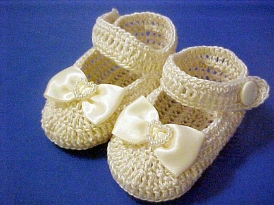 Title (ebay affiliate link): CROCHET BABY GIRL DOLL BOOTIES SHOES ANTIQUE WHITE MJ IVORY BOW