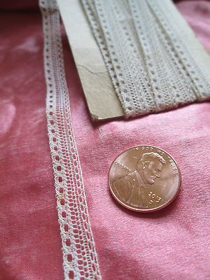 tiny cotton needle lace trim french antique vintage dolls 2 yards +27" X 1/4"