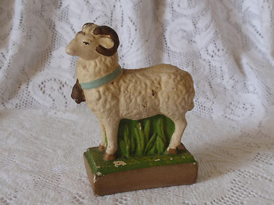 Title (ebay affiliate link): Vintage Chalkware Sheep Ram Figurine Christmas Nativity Farm Animal Village