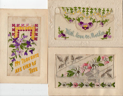 3x GREETINGS-2 EMBROIDERED WW1 SILK POSTCARDS