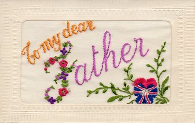 Title (ebay affiliate link): TO MY DEAR FATHER: BEAUTIFUL EMBROIDERED WW1 PATRIOTIC SILK POSTCARD
