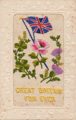 GREAT BRITAIN FOR EVER: EMBROIDERED PATRIOTIC WW1 SILK POSTCARD