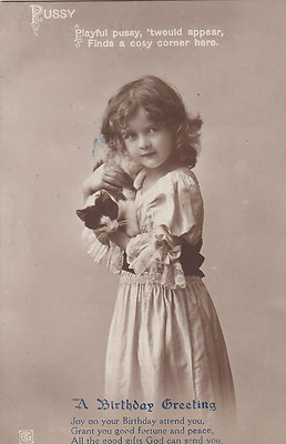 Title (ebay affiliate link): CHARMING CARD OF A LITTLE GIRL HOLDING A KITTEN.*BIRTHDAY CARD