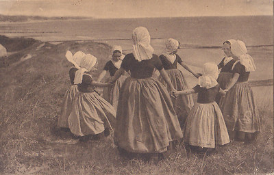 CHARMING CARD OF A GROUP OF GIRLS IN TRADITIONAL DUTCH COSTUME PLAYING