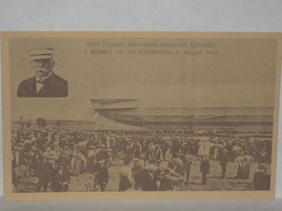 Title (ebay affiliate link): '20 GERMAN PHOTO POSTCARD " GRAF ZEPPELIN 2 MINUTES BEFORE DISASTER 5 AUG 1908 "