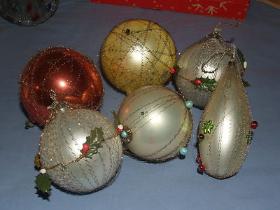 VINTAGE LOT WIRED GLASS CHRISTMAS X MAS ORNAMENT