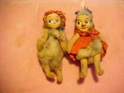 Title (ebay affiliate link): 2 ANTIQUE SPUN COTTON CHRISTMAS ORNAMENTS, DOLLS 4 1/2" TALL