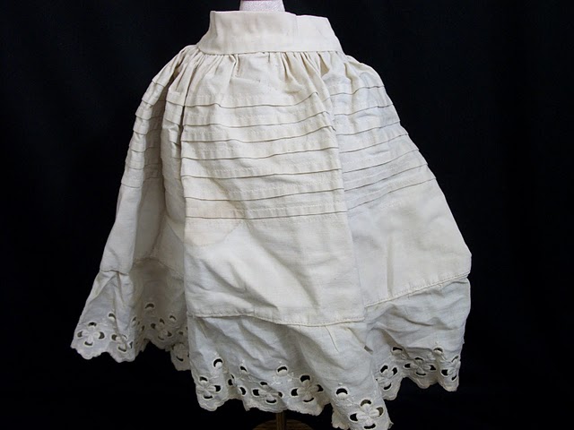 ANTIQUE EMBROIDERED EYELET UNDERSKIRT FOR BISQUE DOLLS