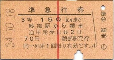 Railway ticket Japan Edmondson issue 3