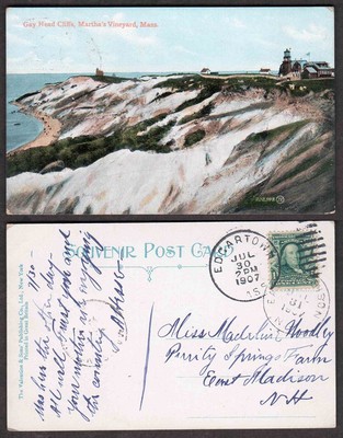 Title (ebay affiliate link): 1907 Massachusetts Postcard - Martha's Vineyard - Gay Head Cliffs