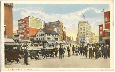 Title (ebay affiliate link): 1917 Waterbury Connecticut The Square Busy Street Scene