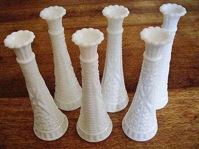 Lot of 6 Vintage 9" Matching Milk Glass Flower/bud Vases