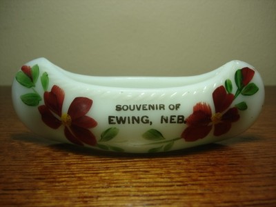 HAND PAINTED MILK GLASS SOUVENIR CANOE EWING NEBRASKA NR