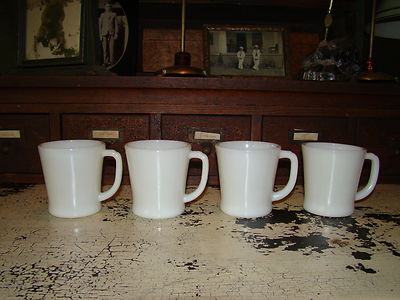Title (ebay affiliate link): 4 Vtg Restaurant Ware Cream Milk Glass D Handle Fireking Coffee Cup Mugs