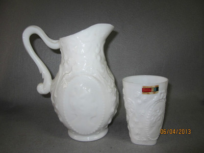 Title (ebay affiliate link): Fostoria Jenny Lind Cameo Large White Milk Glass Bedside Water Pitcher/Tumbler