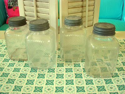 Title (ebay affiliate link): Lot of 4 VINTAGE GLASS JARS with zinc milk glass Ball lids deco GORGEOUS storage