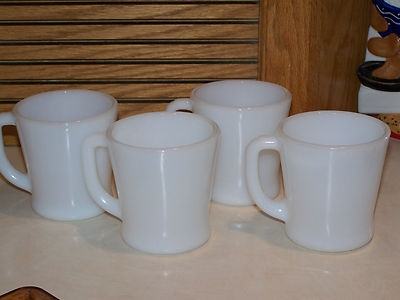Title (ebay affiliate link): VINTAGE ~ 4 WHITE MILK-GLASS FIRE-KING OVEN WARE COFFEE CUPS 'D' HANDLE ~ NICE!