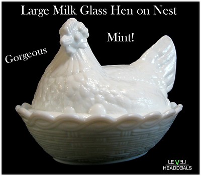 Title (ebay affiliate link): Large Vintage Milk Glass Hen on Nest (Westmoreland ?) Mint! Gorgeous! NR!