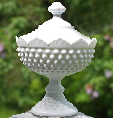 Vintage Fenton Hobnail Milk Glass Footed Candy Jar 1960's