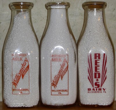 TSPQ BARDELL'S WILLIAMSBURG, PA DAIRY PASTEURIZED MILK BOTTLE BUY IN GLASS LOGO!