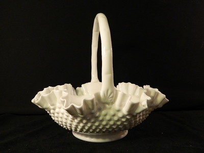 VINTAGE FENTON HOBHAIL MILK GLASS LARGE 12" BASKET ~ MINT