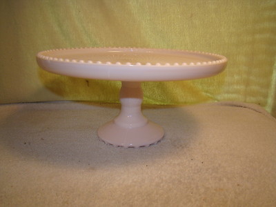Vintage Jeannette Harp pink milk glass cake plate stand