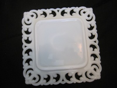 Vintage square white milk glass plate