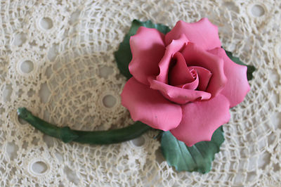 CAPODIMONTE PORCELAIN PINK ROSE WITH STEM AND THORN