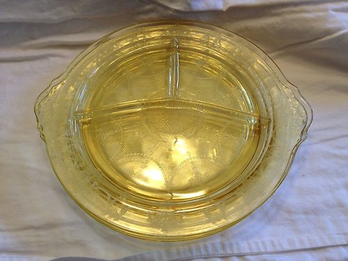 Three Yellow Cameo Grill Plates Depression Glass