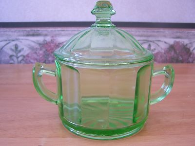 Title (ebay affiliate link): Vintage Hazel Atlas Green Depression Glass Sugar/ Candy Jar with Lid/ Colonial