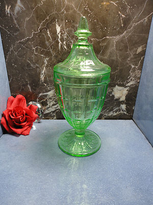 Title (ebay affiliate link): Hazel Atlas Colonial Block Vaseline green Depression Glass Candy Dish
