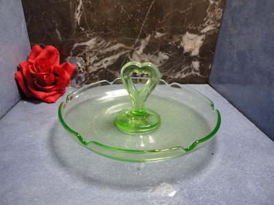 Title (ebay affiliate link): Vintage Elegant or Depression Glass green heart center handled plate or tray