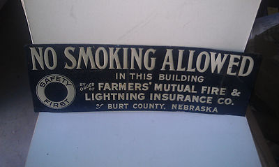 vintage 1930's burt county,ne. insurance advertising warning sign "no smoking"