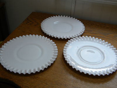 Title (ebay affiliate link): 3 vintage white hobnail milk glass salad plates crimped ruffled edge 8"