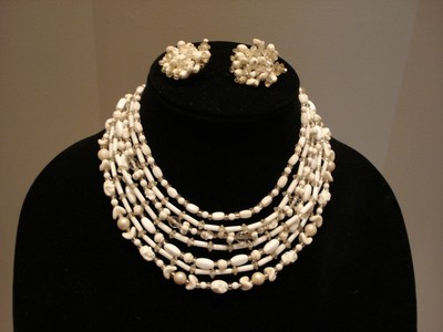 Title (ebay affiliate link): Vtg White milk glass bead multi strand choker, clip earrings West Germany 1950's