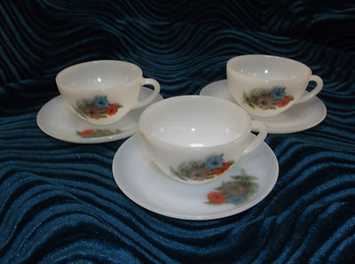 Title (ebay affiliate link): Lot of 6 Arcopal Child's Tea Cups & Saucers Milk Glass PETUNIA DESIGN FRANCE