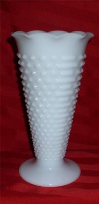Title (ebay affiliate link): VINTAGE TRUMPET VASE MILK WHITE RUFFLED SCALLOPED HOBNAIL BARS VASE WEDDING