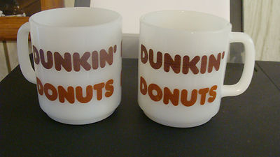 A Set of 2 Glassbake Dunkin Donuts Milkglass MUGS