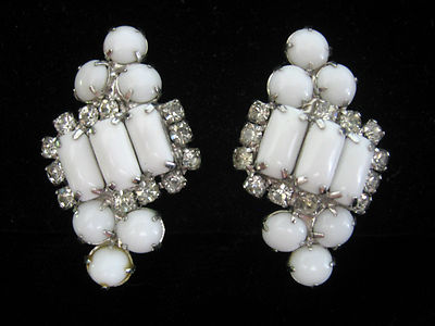 Title (ebay affiliate link): VINTAGE MILK GLASS & SPARKLING CRYSTAL RHINESTONE EARRINGS