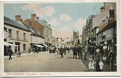 Title (ebay affiliate link): Okehampton - Devon - Fore St, Market Day -c 1910 - Peacock Series. No P5711