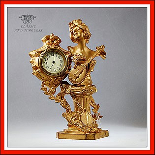 ANTIQUE ART NOUVEAU BUST WOMAN BRONZE PATENTED CLOCK