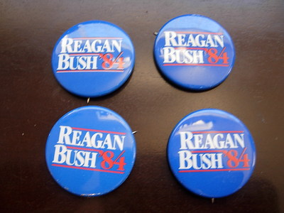 Title (ebay affiliate link): 4 Reagan Bush '84 Official Re-Election Campaign Buttons