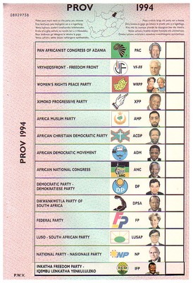 SOUTH AFRICA 1994 BALLOT PAPER (Nelson Mandela) - PWV