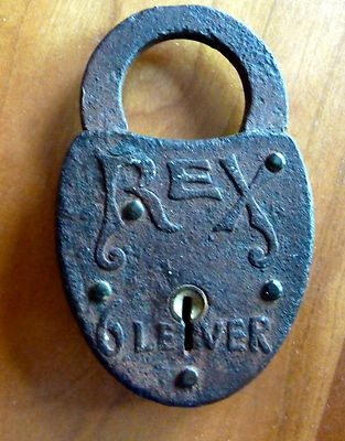 Title (ebay affiliate link): Antique REX Lock 6 Six Lever Pancake Padlock No Key Iron or Steel RARE