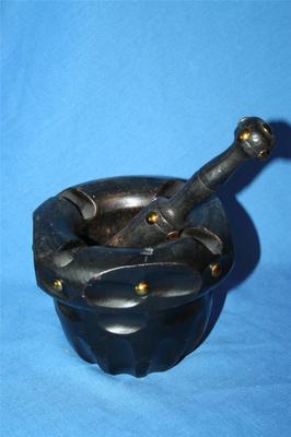 Title (ebay affiliate link): Vintage Hand Carved Wood Mortar and Pestle with Brass Accents