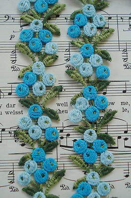 Title (ebay affiliate link): VINTAGE SCHIFFLI EMBROIDERED AQUA FLOWER RIBBON APPLIQUE LACE TRIM ANTIQUE DOLL
