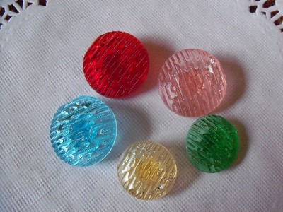 Title (ebay affiliate link): 5 DEPRESSION STYLE CRYSTAL CLEAR GLASS VINTAGE BUTTONS PINK AQUA RED GREEEN YELL