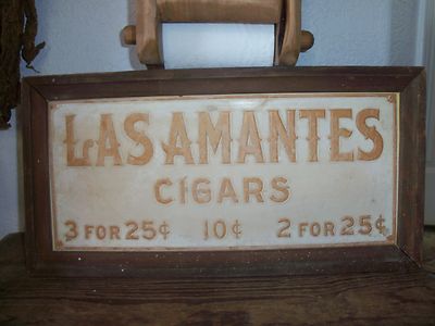 Title (ebay affiliate link): VINTAGE EMBOSSED WOOD FRAMED"LAS AMANTES CIGAR' SIGN