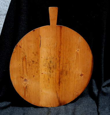 Title (ebay affiliate link): 19th C. ANTIQUE WOODEN BREAD DOUGH CUTTING BOARD with HANDLE * 20 INCHES ROUND