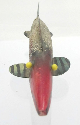 Title (ebay affiliate link): Vintage Red & Green Fishing Decoy w/ Pin Eyes / Metal Fins yqz